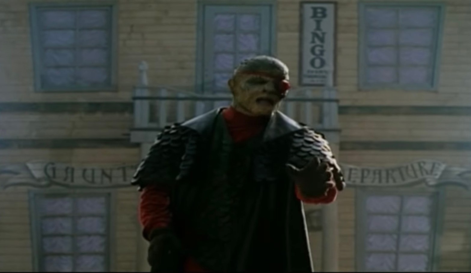 The cast has the likes of George Takei as Doc Valentine and Julie Newmar as Miss Kitty doing bits with their characters that play into their better-known parts. Carel Struycken, who was the individual at the time they always cast as the creepy tall guy, plays undertaker Mr. Gaunt. The underappreciated Meg Foster plays cyborg deputy Stell Barr with Isaac Hayes as Buster. Our villains are a scene stealing Andrew Divoff in reptilian makeup as the outlaw leader Red Eye and Musetta Vander as his right-hand Lash. Richard Joseph Paul is our hero, the empathic Marshal Zack Stone who is accompanied by the “native” Buteo (Jimmie F. Skaggs) who is an homage to the general Native American Western character and Tonto in particular.