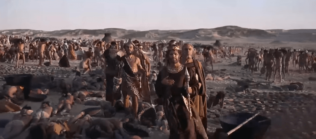 The Bible: In the Beginning… is beautifully shot. And the effects used in this film largely hold up if not are superior to some of the CGI work brought forth today. It’s a mixture of matte paintings and perspective shots and so forth coupled with dramatic music. These are just artistic visuals to not only tell the story but bring about a sense of the Almighty on the screen.