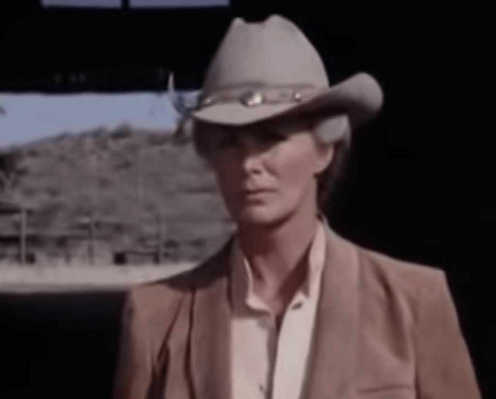 Linda Evans joins the cast as Kate Muldoon first appearing to be a travelling singer but is really a bounty hunter using being a singer as a cover. Interesting but seems like a great many extra steps. Her bounty hunting is a means to pay an army of Pinkertons she has looking for her missing son. That element never gets resolved here or put in a way that says it might be. It’s only important for a connection to the main villain of the story who is a dangerous outlaw feared by everyone in the West. Linda Evans was rather good in her bounty hunter role. She could communicate bad ass by doing very little. And when it came time to do bad ass, she could really sell it. Evans was no stranger to Westerns having come to prominence in The Big Valley, so I am sure that experience helped.