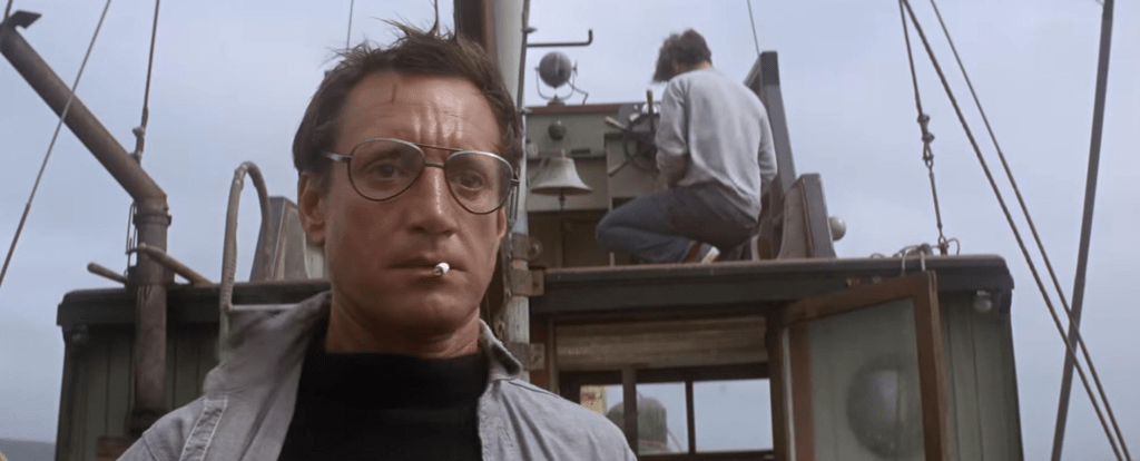 As a character, Quint is that weird and intense neighborhood guy everybody avoids because such a mythology has built up around them that you just wanna stay clear. At least that is my impression. We get our first introduction to him during a town meeting where he drags his nails across a chalkboard and gives the most ominous sales pitch for his shark hunting skills he possibly could. Dial it down from 11 Quint.