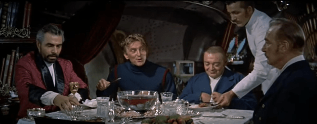 Captain Nemo (James Mason) and Professor Pierre Aronnax (Paul Lukas) are the main characters though they don’t do too much in the overall narrative. Kirk Douglas was clearly the star, but he was not the main. Nemo and Aronnax spend a lot of time talking and philosophizing and that’s really about it. Again I’m not familiar with the original work, but I would think a little more happens than this even if it’s not by too much for either character.