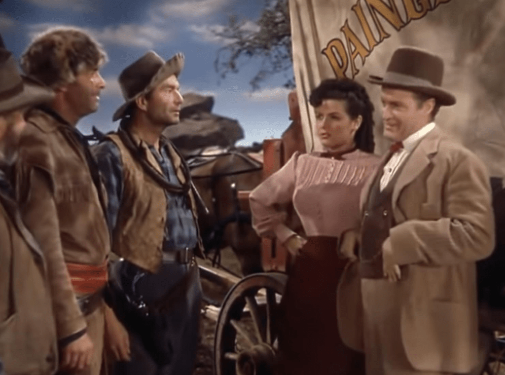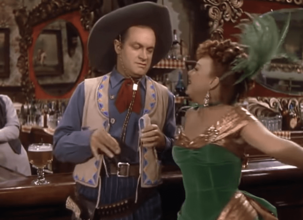 In The Paleface Hope plays “Painless” Peter Potter-a dentist of questionable skill and a lack of spine. This dentist-inspired in part by the real-life Painless Parker-causes himself plenty of issues as he fumbles his way through his craft before his life intersects with Calamity Jane (Jane Russell) on her mission to stop arms smuggling and prevent an Indian war.