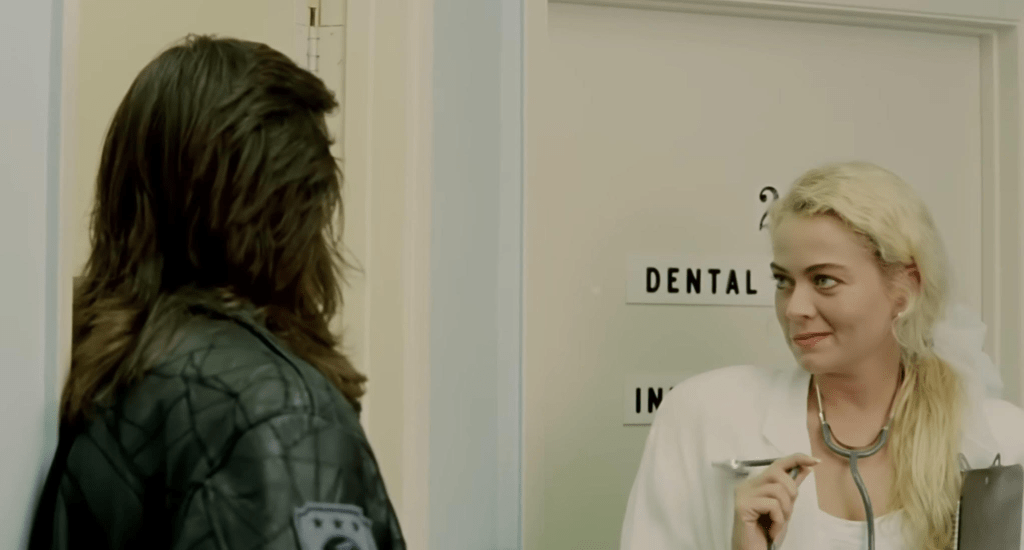 It somehow transcends its flaws to become unintentionally funny. There is a scene referred to currently as “The Horny Nurse” which made the rounds courtesy of the internet. It is a sight to behold and difficult to describe. I can sum it up best as a random nurse in a hospital with a dental office throwing herself at our hero. But that fails to do the moment justice. The scene even includes a cop played by an actor that is clearly high enough that performing his lines is seriously intense.