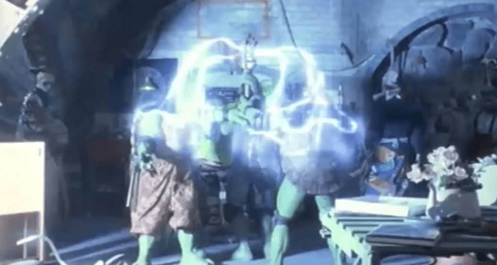 The scepter when it switched the Turtles brought individuals from the past to the future leading to some stuff in the present. The story in the present is certainly a sub story just for scenes of those from the past reacting to the future. The main story is most certainly the past story. The problem is that the future stuff doesn’t really parallel or enlighten anything going on in the past other than a few moments of lover boy being desperate to get back to his girlfriend. I thought then and I thought now that they were added to stretch the film out into a theatrical run.