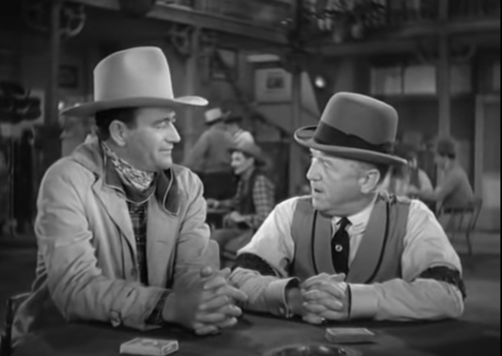 We have two relatively familiar faces either by John Wayne films or in general. Paul Fix was a thug working for Morell. But the real interesting member of the cast for me is William Frawley of I Love Lucy fame as Wolf Wylie. Wolf was basically Wayne’s Obi-Wan Kenobi that guides him in his struggle against Morell and teaches him the skills needed to begin to overcome the villain. He is charming and affable and as far from Fred Mertz as he could get.
