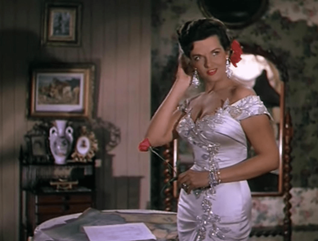 Jane Russell returns for the fun, but not as Junior’s mother. Rather she is a whole new character who’s a lot like Calamity Jane in the last film. Jane Russell was a sex symbol back in the day, and this movie certainly showcases that in a few numbers and the accompanying costuming. I see her performance here as much better than the last film. She comes off as an appropriate level of tough and maybe even cynical for the material and her performance overall is a little less stilted.