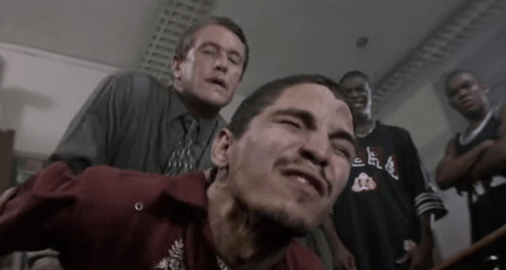 While Lacas makes the whole situation possible, it is corrupt-cop-turned-corrupt-principal Claude Rolle (Ernie Hudson) that is the ultimate issue. He has set up a distribution network using the school. He starts out looking like an official trying to protect his butt as well as that of the school, but his involvement soon becomes clear. Whether or not he suspects anything from Shale at the start is unimportant as he makes it clear that he is the man in charge which is essentially a big hint to the audience.
