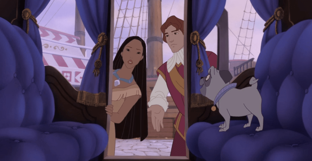 The last movie’s Loverboy John Smith does not feature much in the story other than to bookend things. John Rolfe is the romantic partner of Pocahontas now. The two falling in love feels like just because and not a progression of the story. I know this is aimed at kids (and there marriage is historical fact) but that does not mean you cannot get SOMETHING. They felt more like friends than anything else.