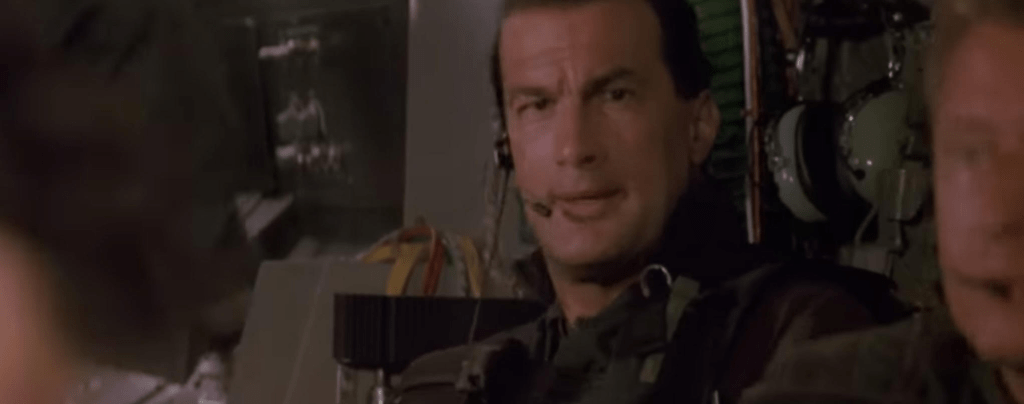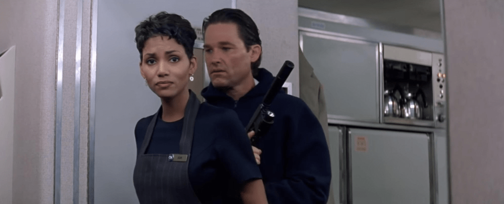 Kurt Russell, Steven Seagal in his heyday, Halle Berry, John Leguizamo, Oliver Platt, Joe Morton, David Suchet, Andreas Katsulas, J.T. Walsh, and B.D. Wong. That alone is a great deal of talent to be a part of any movie. I’m just a little confused how Marla Maples Trump who played Nancy got her name in the opening credits. This is not an anti-Trump diatribe on my part. Rather in this movie she doesn’t do much of anything. She says maybe all of 10 words and spends more time reacting to events than anything else. The woman who got killed when her head hit the counter had more lines than Marla Maples Trump.