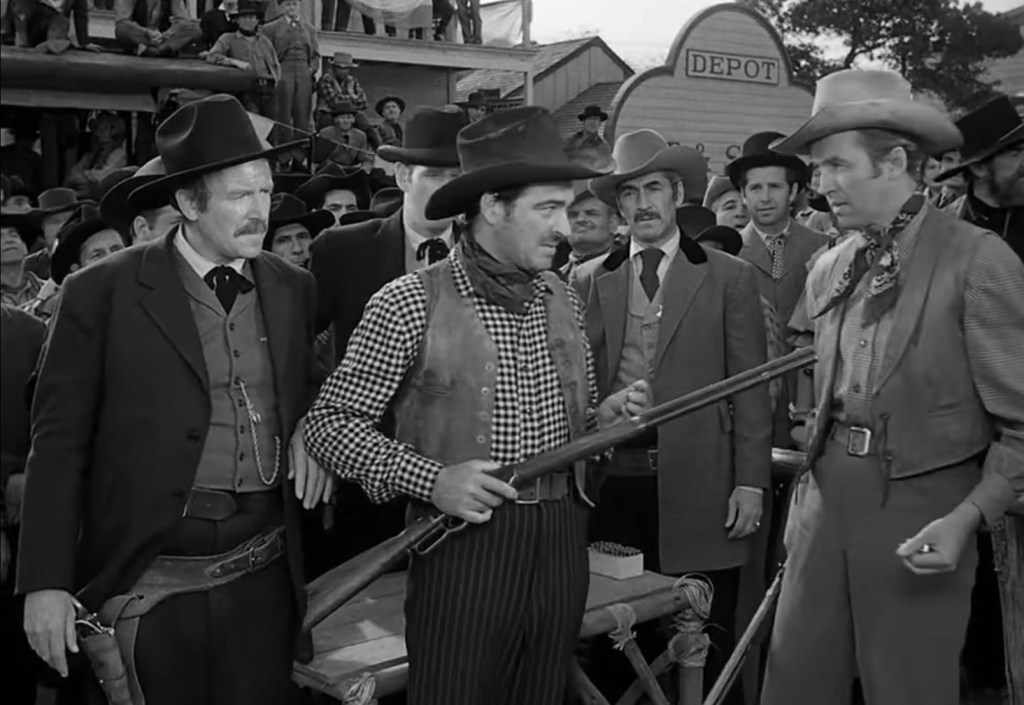 Lola whom McAdam meets in the opening of the film is a dancehall that’s getting run out of town because they’re running a promotional contest for the titular gun. That’s what the shooting competition amounts to being that introduces the weapon into events. And that is where we see our two enemies first meet in the story. While simply a contest on the surface, it’s also about demonstrating that both characters are equal in not only skill but as characters.
