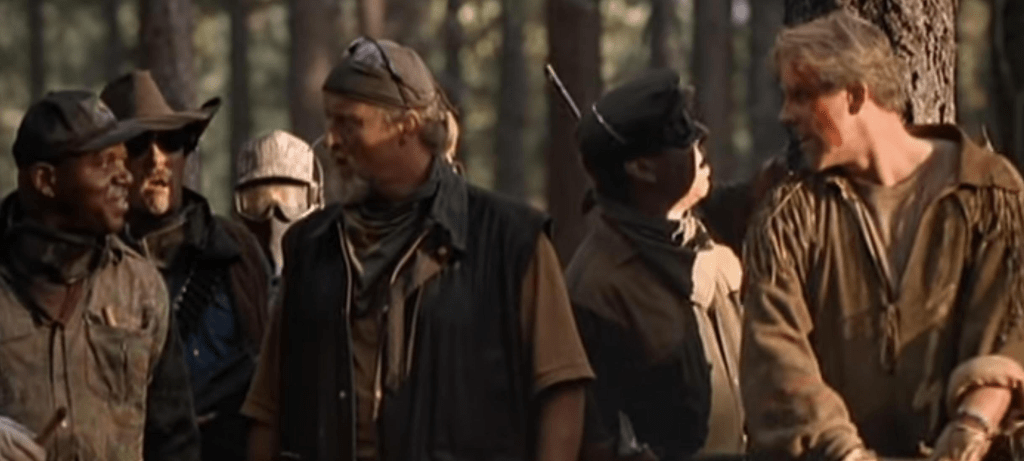 As for the members of the hunting party we do get a token mention of why they are there for that particular trip though Hawkins (Gary Busey) looks like a regular participant. And that is a problem. Not that this could be a classic, but it could have been received better with a little better explanation of things. Extraneous info can be found outside the movie, but the actual presentation is lacking. From what we get presented our group of hunters who get very little depth drop a good chunk of money to hunt and kill somebody that will not be missed. Enter Mason.