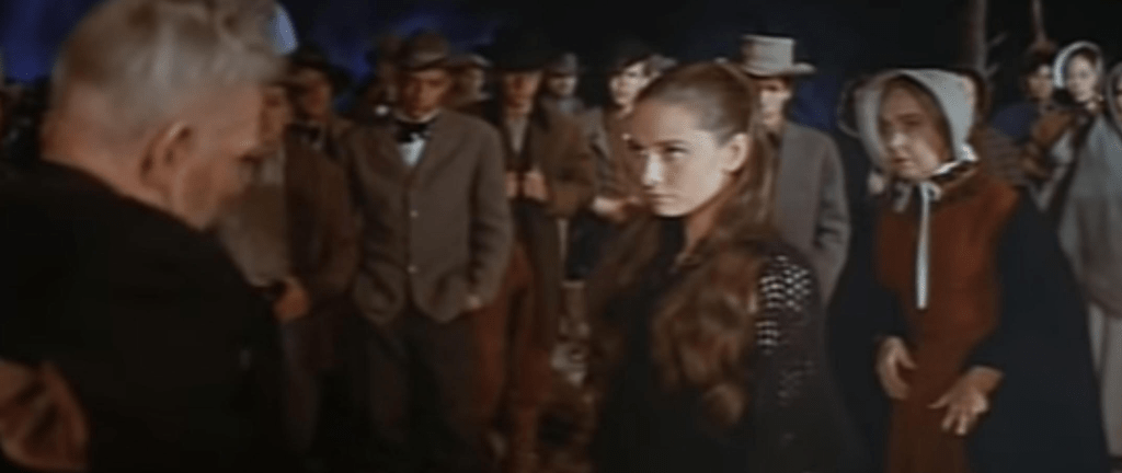 Pretty early in the story-before anything really starts-it is set up that there are secrets being kept concerning the young Rachel Zachary (Audrey Hepburn) who is a foundling child taken in by the hardworking Zachary Clan. What those secrets could be are not immediately revealed but do connect to the sudden appearance disturbed Abe Kelsey (Joseph Wiseman). When a weird character shows up and spouts stuff like they are a crazy preacher you know it will be good.