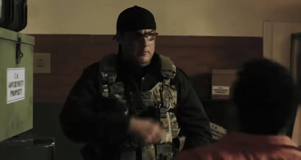 Seagal is paired with action icon (I’m saying that sarcastically) Stone Cold Steve Austin as weapons expert Manning. Austin can do intimidating but not much else. He has no charisma or screen presence. And while working on that very important garbage truck he is just an asshole to everybody. Why is Manning taking time out to work on a garbage truck when he is supposed to be running security for this black site prison transfer? It’s very convenient for the purposes of the plot but makes no sense.
