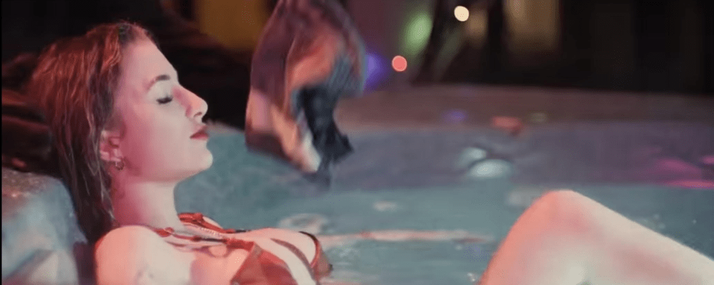 The characterization is sloppy at best. Nothing really defines anybody. There’s nothing that really makes anybody different. The only one that stands out is the girl in the hot tub and the reason the girl in the hot tub stands out is she’s the first of the group to get an inkling of what they are going to face. That and she’s in a bathing suit taking selfies.