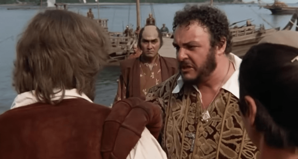 Blackthorne is a smart character and from the start knows the Jesuits are not being straight with him but is initially stuck with their speaking for him. The thing is he eventually meets a Spaniard named Vasco Rodrigues (John Rhys-Davies) who has no love for the Jesuits himself yet does not take the opportunity to compare notes when he can. Then again we might have shaved a hour or two off if he did.