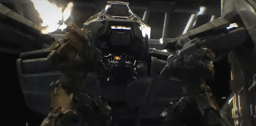 There some very good visuals in this. Not a fan of CGI but this held up well in the intervening years since it was released. The characters sport suits more in line with Halo than anything seen previously in Starship Troopers other than maybe the series Roughnecks: Starship Troopers Chronicles. There is even a scene with a mech suit that looks pulled straight from the Lost Planet games. And the similarities to that even extend to interior shots.