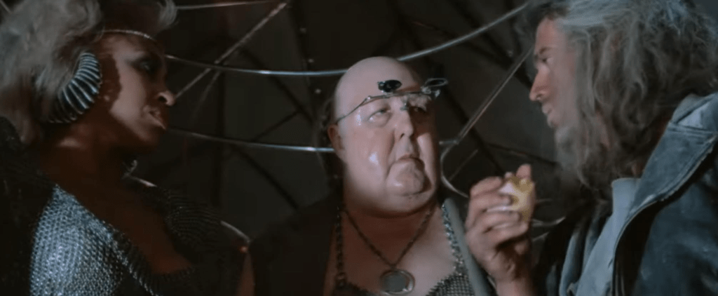 Tina Turner as Aunty Entity was a surprise to me. Turner gave a good performance. She is equal parts ruthless and intelligent. Her motivations are not necessarily evil, but her methods are certainly harsh. Her goals are lofty as she seems to see Bartertown as a way to restart civilization. But she aspires to be an unquestioned dictator to do as she sees needed.