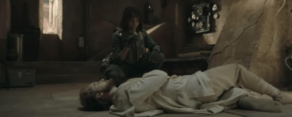 Maybe it was the presence of Carrie-Ann Moss (and most likely it was) but the opening fight felt a little like they were trying to emulate The Matrix. You have two Force users and the Jedi doesn’t pull out the lightsaber till the very end? I get playing up the major thing of your biggest star but dumping the big thing your universe is known for seems silly. Especially when it would have ended the fight quickly.
