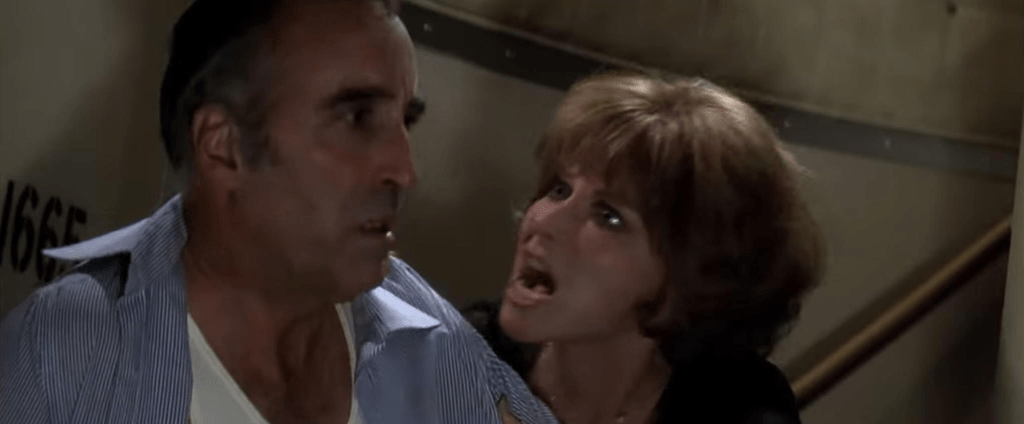 Much like the last two films, Airport ‘77 has its fair share of quality actors who were present to give it that appearance of something better than what it actually was. Jack Lemmon as Capt. Don Gallagher, Lee Grant as Karen Wallace, Joseph Cotten as Nicholas St. Downs III, Olivia de Havilland of all people as Emily Livingston, Jimmy Stewart as Philip Stevens, George Kennedy returns as Patroni, Darren “Kolchak” McGavin as Stan Buchek, Christopher Lee as Martin Wallace, Robert Foxworth as Bob Chambers, Monte Markham as Banker, Kathleen Quinlan as Julie, Gil “Buck Rogers” Gerard as Frank Powers, and M. Emmet Walsh as Dr. Harvard Williams. Just a great cast right there for something that is quality junk.