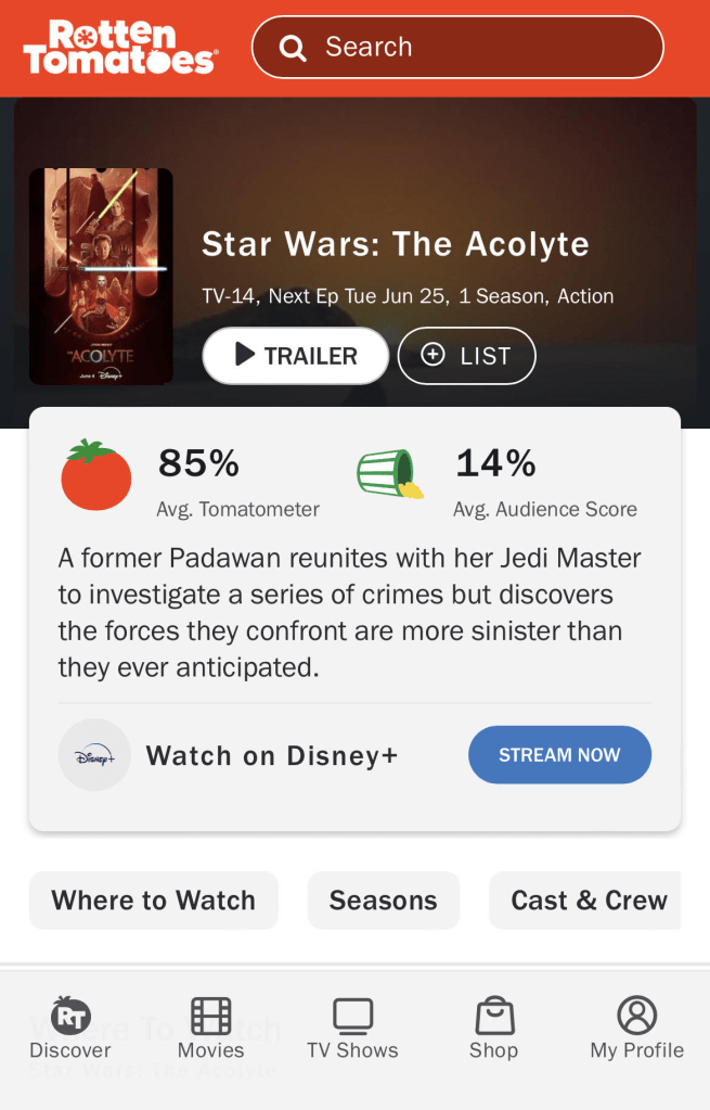 Disney has been going really hard to make the Jedi the bad guys. Why? At its heart Star Wars is a good versus evil story. This is quite possibly the worst written and just generally boring bit of Star Wars you will ever encounter. The first four episodes have been lackluster with questionable logic. The writing is abysmal. I’m going to see this at the end, but I don’t think you should.