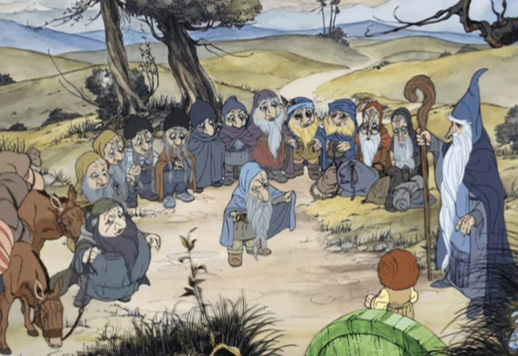 The voice acting is excellent. It’s a combination of great actors and great voice actors. These were people who knew how to perform which is something necessary for animation in general and The Lord of the Rings in particular. The Hobbit may be the children’s companion of the The Lord of the Rings world but is still a more sophisticated story than many others.