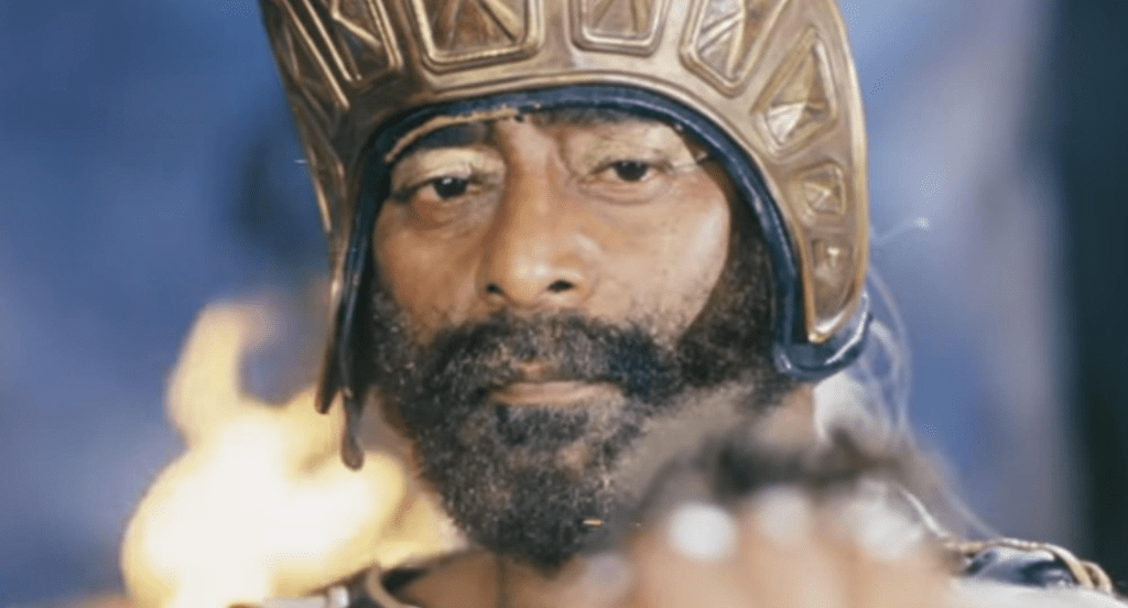 For a bad movie that maintains an improbable hold, this does get a good plot twist. Ator’s mentor Griba (Edmund Purdom) has been using him to get back lost power from the High Priest of the Spider (Dakar). I thought at most he was a bitter former henchman though that plays basically the same.