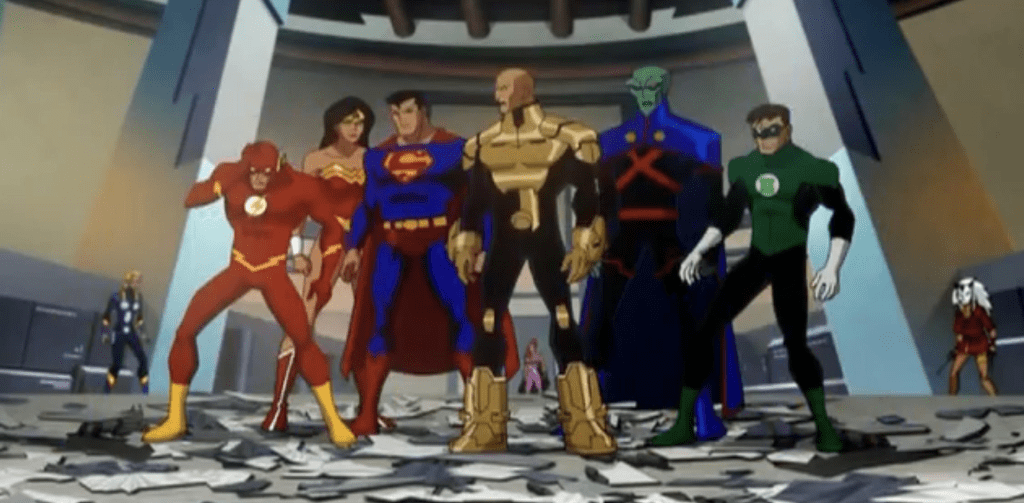 - Based on the abandoned direct-to-video feature Justice League: Worlds Collide