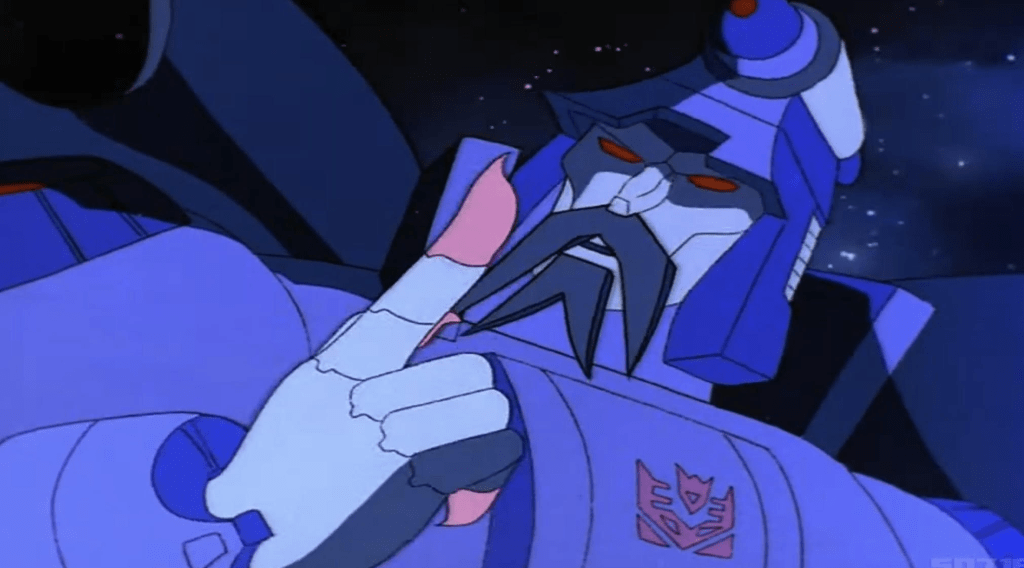 Often characters just showed up in the series as if they were always there. “Those guys the viewers never saw but we did.” Such was the case with Blitzwing. Aside from the tidbit about Megatron, we get in a moment the indication that Blitzwing is old enough to have some vague impression of the Quintessons making him older than Kup.