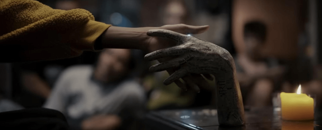 As a horror film it doesn’t do too much scaring. The focus is on using a horror film to look at personal trauma. Mia (Sophie Wilde) is haunted by the death of her mother and thinks using a severed hand she finds in the possession of some douchebag associates that know nothing solid about it is a good idea. I am not sure if she is looking for closure or the truth about the death or whatever. Or maybe she is stupid to get the movie to happen.