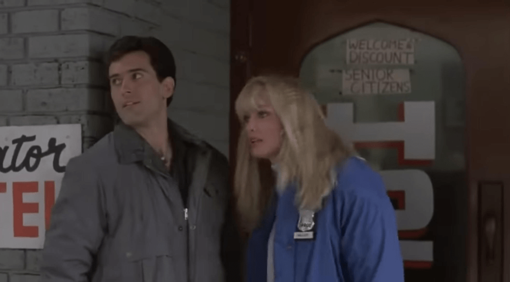 Also in this is a young Bruce Campbell as Officer Jack W. Forrest Jr. Campbell is king of the B-movie. And I say that with respect. The man has a unique acting style and always brings that something special to whatever he does. I must say he is much better as the charming asshole rather than the serious character like he is here. That doesn’t make him bad, but this role doesn’t necessarily work with his strengths as an actor.