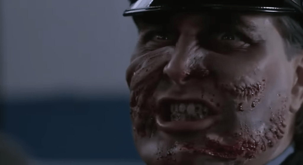You may think that there is a lot of prosthetic makeup on Robert Z’Dar who plays our titular cop. You may think that, but you’d be wrong. I know I did for many years until I got a good look at him without make up. Z’Dar (real name Robert James Zdarsky) suffered from a medical condition called cherubism which gave him an enlarged jawline and a slightly sinister appearance. A few fake scars and he was good to go here.