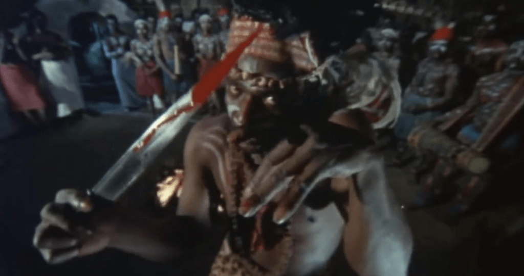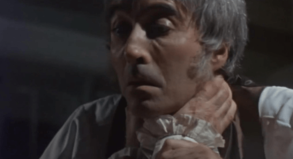 Edward for his part has become sick of his extended captivity to hide his shame and plots to fake his death to get out of there with the help of the crooked family lawyer Trench (Peter Arne) and a witch doctor (Harry Baird) because where else can you get that stuff in Victorian England? Things get complicated from there when Julian needs a body to act as his brother’s since Edward is really messed up (supposedly) and his appearance would bring shame on the family.