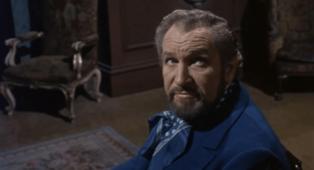One thing this movie does is it doesn’t show you everything. It makes your mind to do a lot of the work for the filmmakers. That starts out as a benefit but becomes a bit of a distraction. In this movie Julian Markham (Vincent Price) keeps his brother Sir Edward Markham (Alister Williamson) locked in a room due to a deformity caused by a curse put on him in Africa but you never get a look at him with no indication on the affliction until the closing shot.