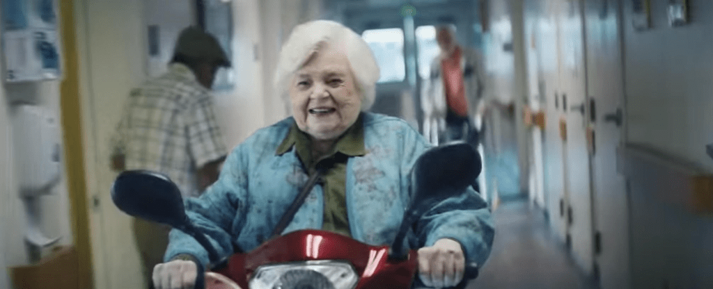 Thelma is an action comedy that is a play on the old person that’s still a bad ass genre that’s been growing lately but is also much more than that. There is the theme of confronting old age and time with the main characters looking at the end of life and having given up. That spark of life is gone from them meaning when this movie goes downbeat it goes really downbeat. For instance when Thelma starts calling old friends to help her out during her predicament only to find they have died. It also manages genuine humor with moments that tug at the emotions.