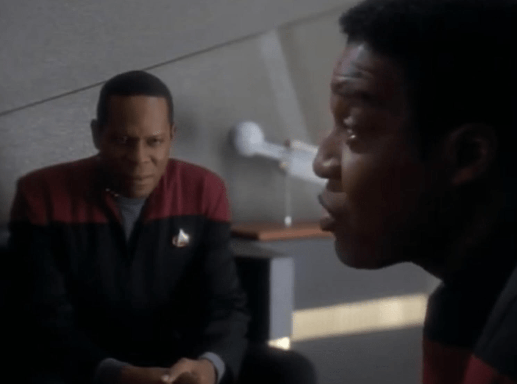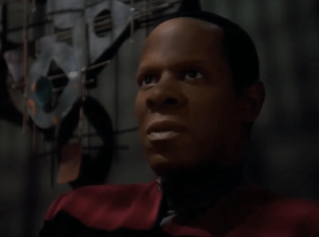 Sisko’s (Avery Brooks) speech post meeting with Admiral Nechayev (Natalija Nogulich) highlights what often drove Star Trek: Deep Space Nine. It’s easy to be a saint in paradise but the setting of DS9 was not paradise. Earth is peaceful and often at least in the two preceding (three if you count the animated series) shows the characters were largely in a suburb of paradise which is a Federation starship. Deep Space Nine threw that all out the window and put the characters in a more unstable existence. A great bit of acting delivered thunderously by Brooks.