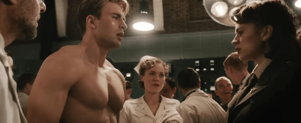 The chemistry between Steve and Peggy Carter (Hayley Atwell) is great but there is something that I rarely hear discussed. Steve Rogers was just a friend to Peggy until he showed up all buff and tall. There was a great deal of “Mommy wants that for Christmas” in her actions. Then they had a great romance. If Captain America hadn’t developed America’s ass those two never would’ve gotten together. Once she could do laundry on his washboard abs it was on!