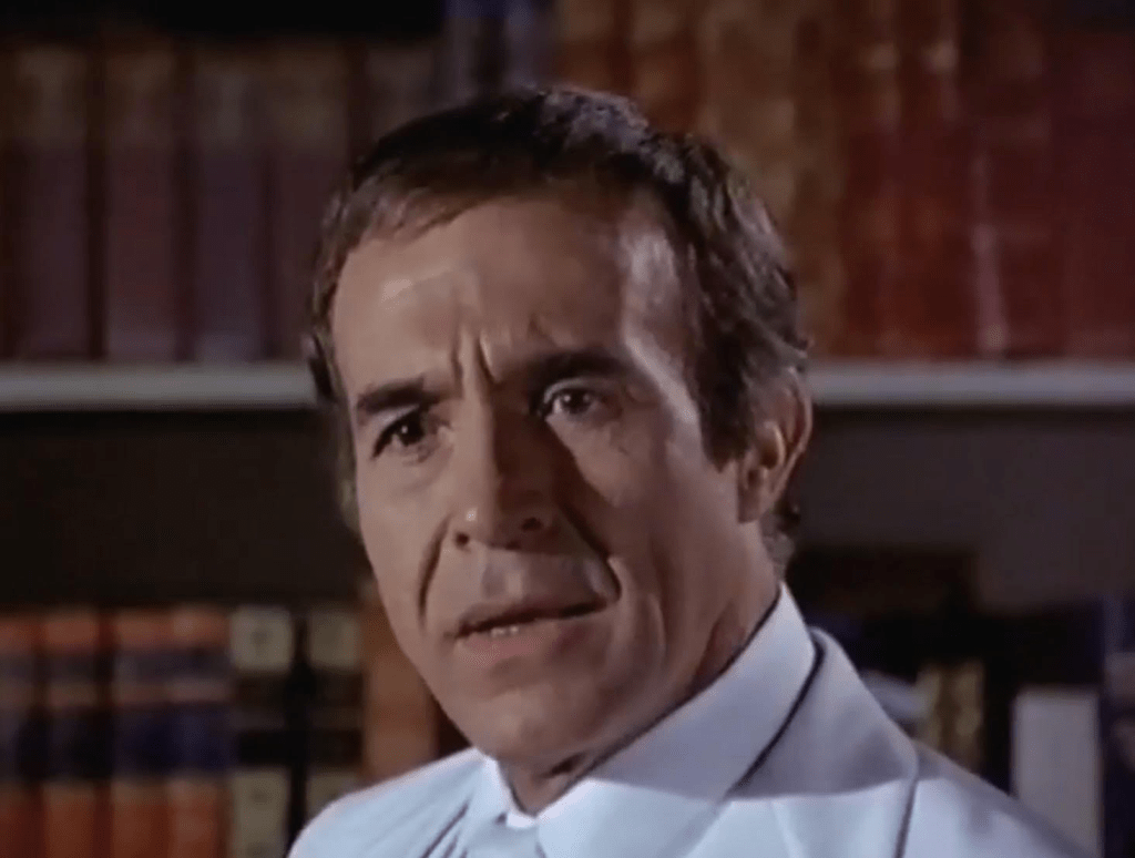 The head villain called Abner Smith is played by Ricardo Montalbán. Director Vincent McEveety keeps his face obscured and I’m betting Montalbán was a late addition to the production since he gets special guest star billing. Plus his voice in those scenes for much of the movie doesn’t necessarily match the sound quality of everything else. I guess by hiding his face they were trying to make it look like a tease, but it’s more along the lines of him just not being there for filming. Montalbán tries to put on a French accent, but his natural, rich Mexican accent overwhelms that yet gives it a quality you couldn’t get with anyone else.