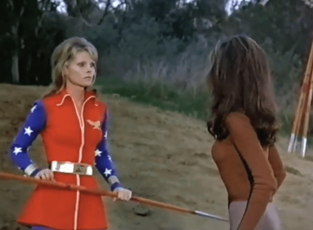 Much like The Incredible Hulk which premiered four years later, Wonder Woman’s powers are rather muted if existent at all. She is slightly better than the average person but not noticeably superior. She is more along the lines of a well-trained or well-conditioned athlete than a superhero. Her lasso and bracelets are gadgets presumably issued by the agency rather than magical gifts for use in fighting evil.