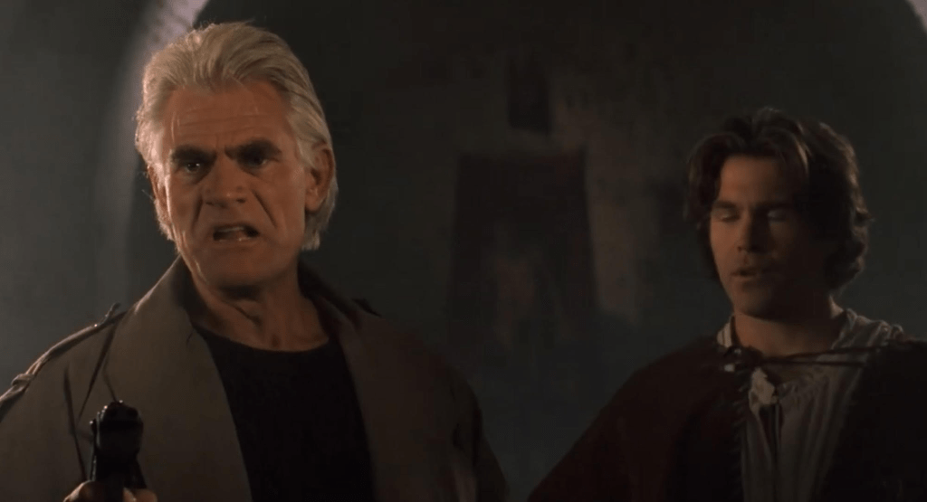 The story is just slow and boring. It doesn’t even have the charm of feeling like it was written by a kid. While the castle had been used to great effect in other Full Moon Entertainment movies here it’s a blatant in your face cost saving measure. The dialogue and characterization is just awful. As I said before Peter David is responsible for a great many excellent comic book stories and has some idea of how to write a script yet had no idea what to do here. Either this was his first bit of work or his just his laziest.