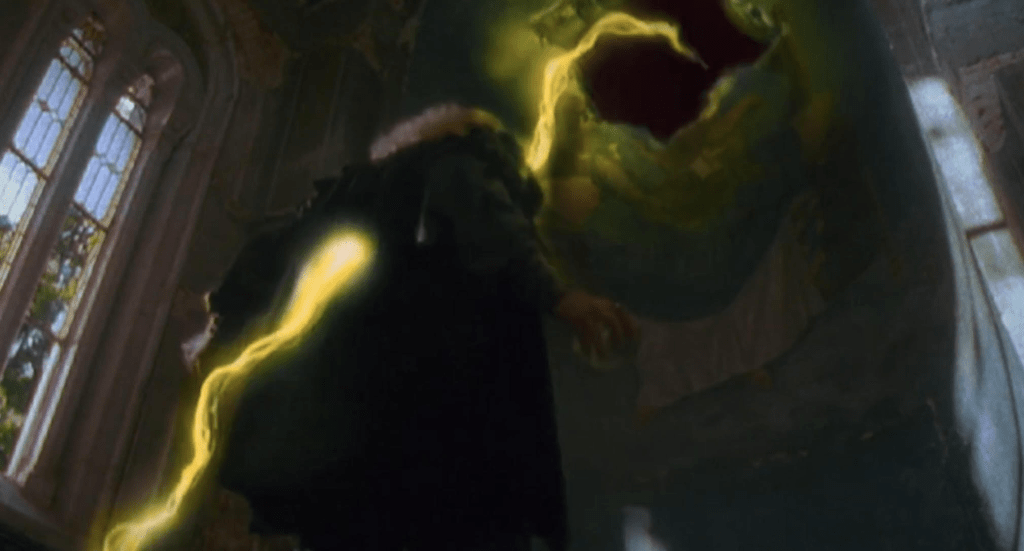 It’s revealed Lyra has the same powers as Farr even though there’s not much of a hint of magic if any at all in the character. It would be something if Randall was more than a pretty face. She has no range here. At no point does the movie hint at an explanation for the similarities for the two Lyra characters. How are they in both universes but nobody else is? They couldn’t get any of the previous actors to fly over for a cameo?