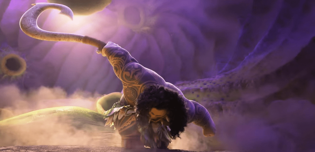 That leads me to Maui. In the last film he was a demigod trapped on an island. Now he’s free to roam and it doesn’t look like his legendary reputation is deserved at all. Like Moana’s crew he looks borderline incompetent even if he does have a high opinion of himself. It’s not done in a never-meet-your-heroes kind of way so there is no lesson to be learned or message sent.
