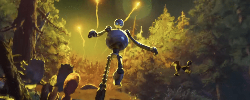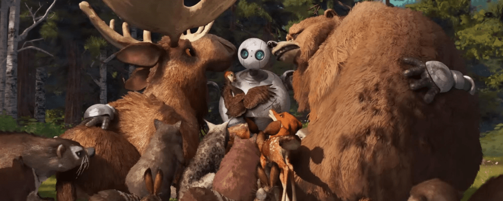 It presents a human story with characters that are not. What we get is a story about raising a child using that as a vehicle for the growth of all characters. Our wild robot ROZZUM unit 7134 (Roz) finds itself caring for a runt duckling that eventually goes by the name Brightbill. It goes into the highs and lows of being a parent along with the frustrations one can face that they would go through all over again.