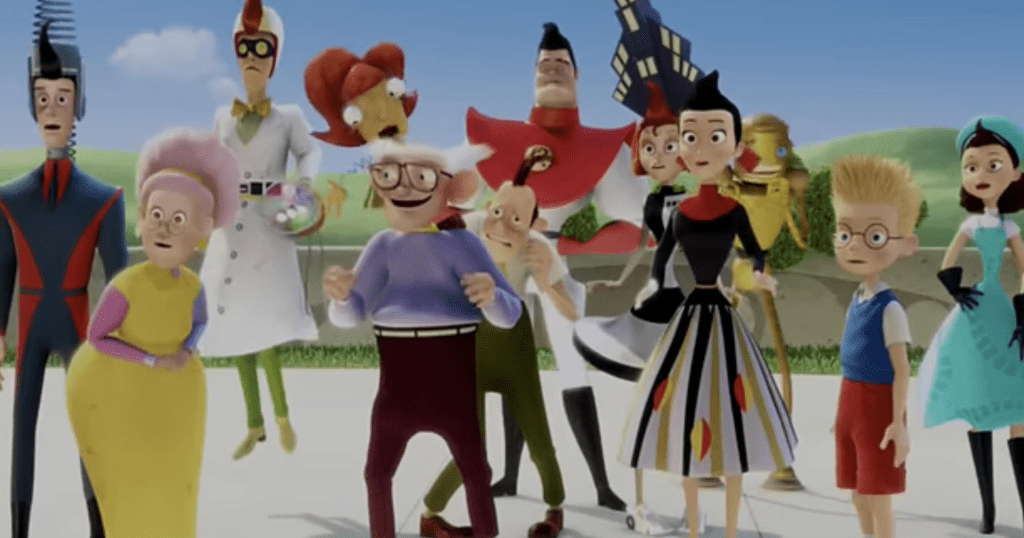 Meet the Robinsons was before Disney acquired Pixar and they were trying to start up their own computer animation studio. Perhaps it’s a combination of aging or the fact that they were trying their own style distinct from Pixar, but the animation looks a lot like cheap direct-to-videos computer animation. It may even owe to William Joyce contributing to Robots and a need to differentiate from that then upcoming project.