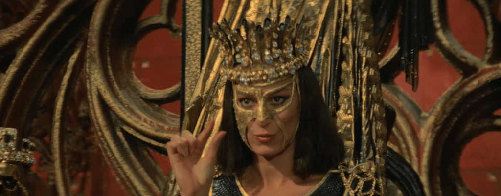 How did she wind up with The Grand Master (Tad Horino) teaching her? They have a connection but what is it? It’s her origin story but how she came to be with this sage is ignored. After that unexplained bit we get the setup of the villainous Queen Gedren (Sandahl Bergman) set on controlling a talisman that can only be touched by women called the Talisman because creating a name is hard. You could not even lift something unrelated from Conan creator Howard?