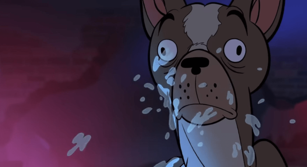 The Bull/Honey story climaxes when Honey is taken to breed with local douche and show dog Sterling. Bull comically lands on Honey’s posterior where Sterling proceeds to sodomize him thinking he is doing the deed with Honey. Sterling is even ignorant of what Bull is stating to Honey. Reminds me of a joke involving the Invisible Man, Wonder Woman, and Superman.