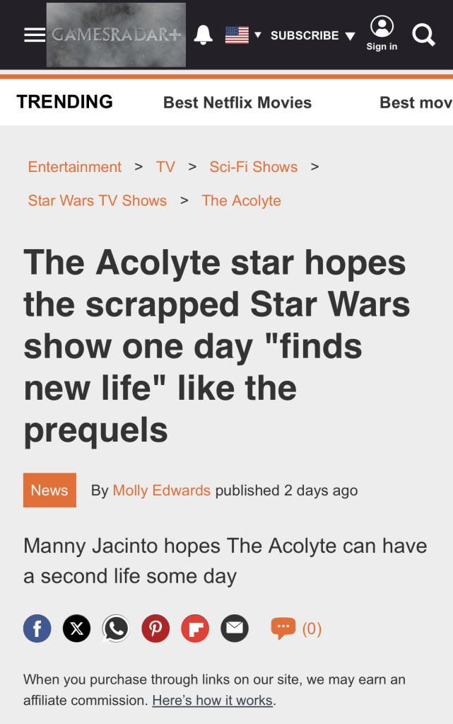 Star Wars shows haven’t exactly been doing banger numbers. Success is no longer a given from a property that was once all but capable of printing money. The Acolyte is perhaps the best known example of their poor storytelling and resulting poor reception. It did so poorly that they actually announced they were not making any more rather than let it quietly disappear.