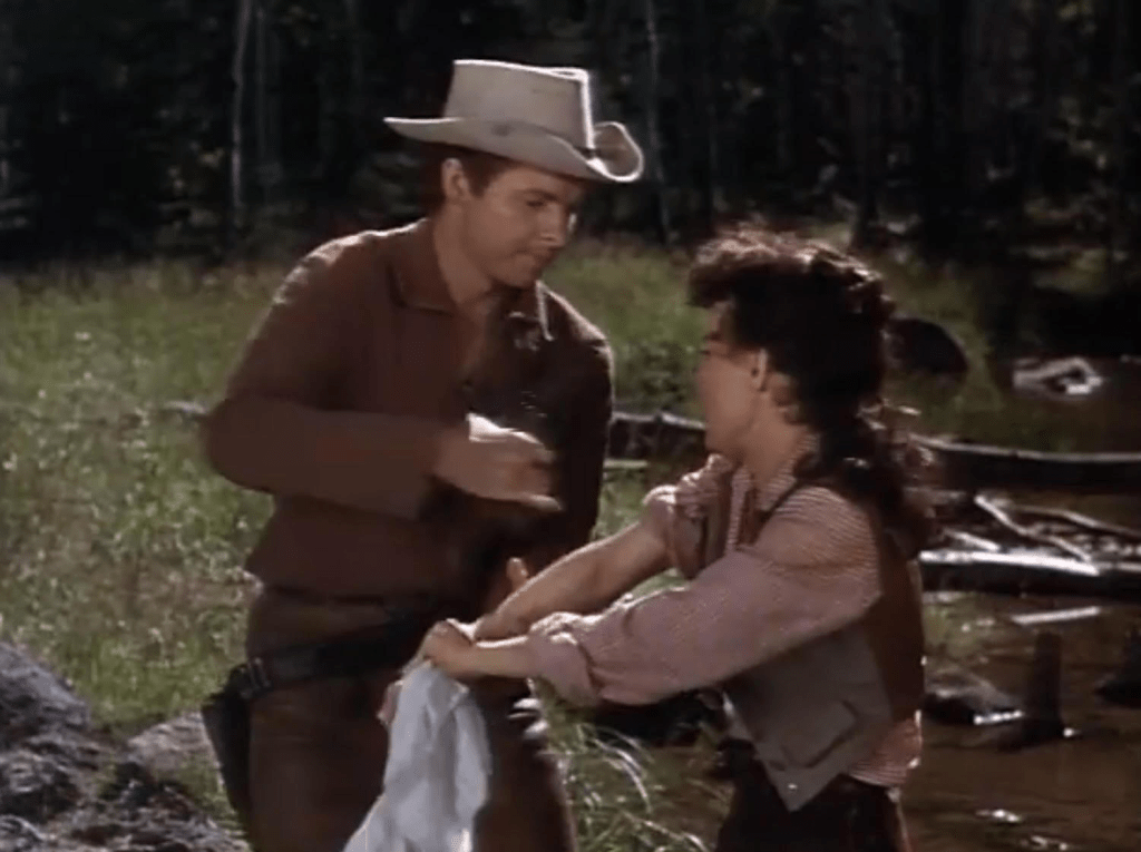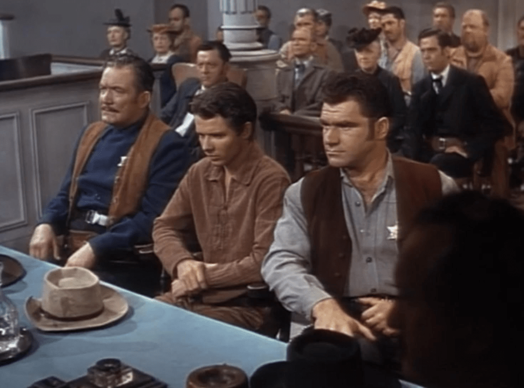Jeff has been wanted for years over a murder accusation that given the era he is clearly innocent of. When he is injured, Ring goes to town for help and does so in the dumbest way possible creating issues for himself forcing him to be defended in court by Riley. Come to think of it I do not see Riley do much ‘lawyer stuff’ when the action moves to a courtroom. No legal sounding jargon. That gets handled by the men folk.