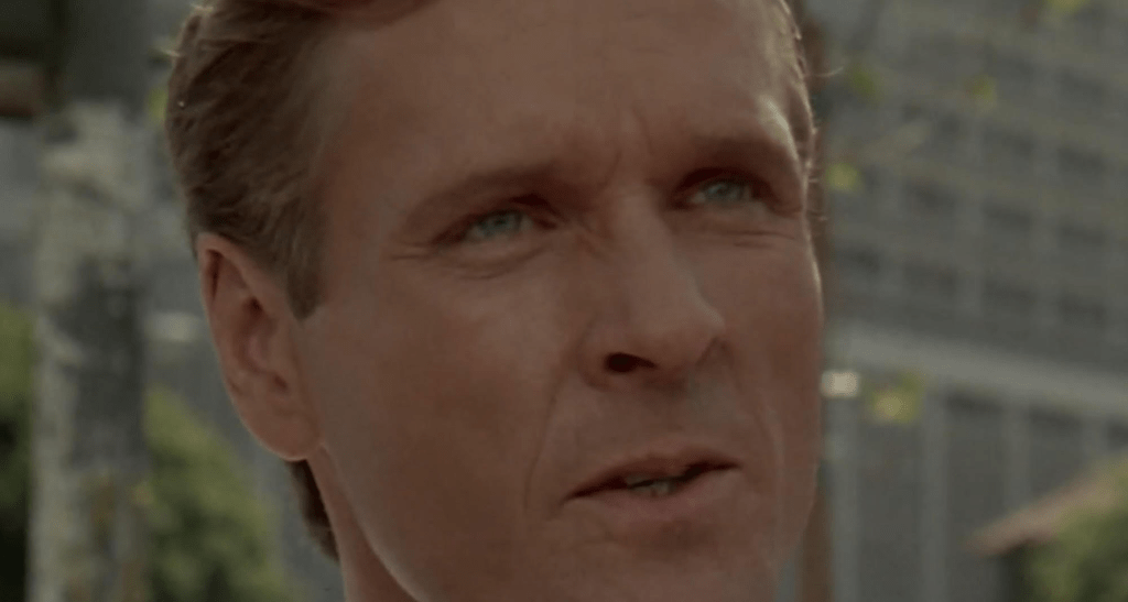 Despite betraying him for the villain, his fellow squad members are really two dimensional. I cannot recall much about them beyond Branscombe Richmond who plays Detective Max Quentero was in the syndicated series Renegade and he made a brief appearance in Commando. That’s not even a character trait of his in the movie! They are nameless forms with nothing worth mentioning. Either reduce their numbers or give them something memorable even if it’s stock characteristics. I did not even realize they were baddies in the opener!