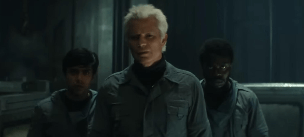 This all connects to Kirsh (Timothy Olyphant) who from the looks of it now was trying to outsmart Morrow and capture him on the island from the start. So much had to go right for that to happen. He may be an android capable of complex calculations and planning but this exceeds plausibility.