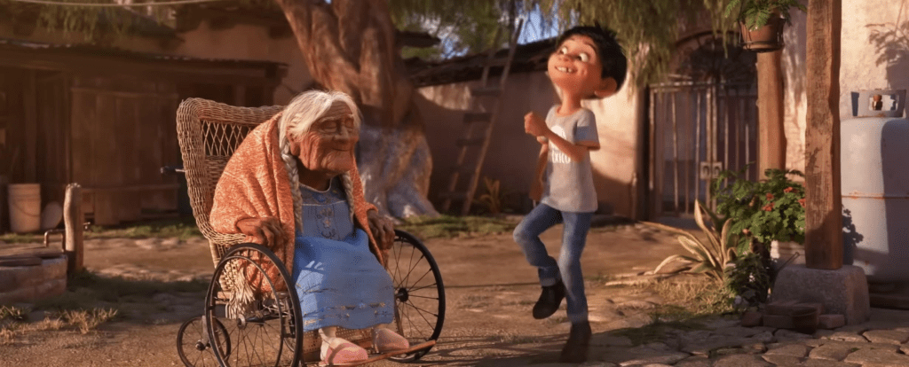 To go off on a tangent when Miguel and Héctor go to Héctor’s friend Chicharrón is downright tragic. He’s clearly weakened from not being remembered and wallowing in his final days because all those that remember him are gone. He is broken and looking for comfort in his final moments. You assume some antics will occur but realize he is really looking for something in his final moments. Such a hard-hitting scene.